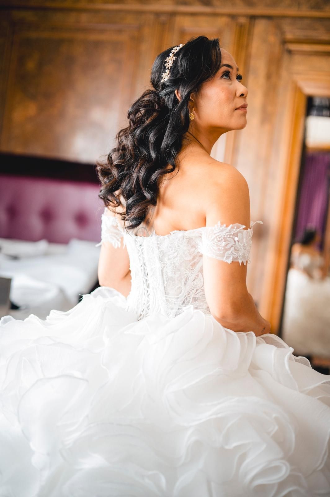 Een bruid die zich klaarmaakt voor haar grote dag, omringd door liefde en zorg. De spanning, de blijdschap en dat sprankelende gevoel van geluk – alles komt samen in deze intieme momenten.